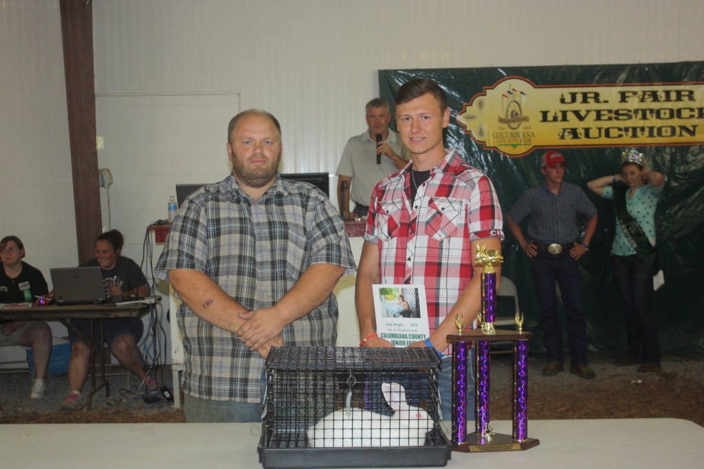 Cody Wright exhibited the 2016 Columbiana County Fair grand champion rabbit market fryer. At 4.80 pounds, the fryer sold for $100 to Matthew Earl of Lane View Farms.