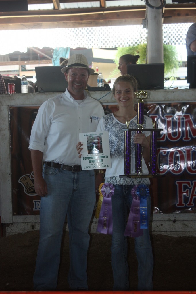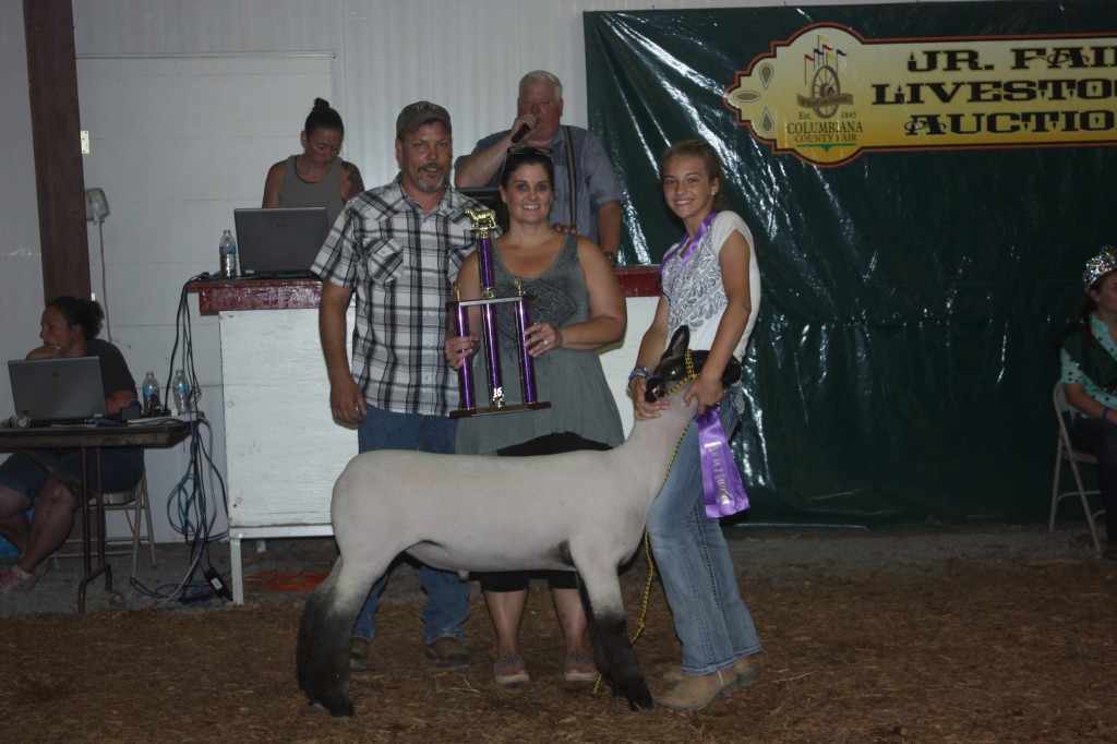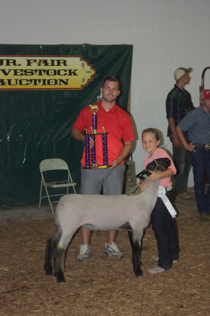 The 2016 Columbiana County Fair grand champion market lamb was raised by Lainey Mercure. Weighing 154 pounds, the lamb sold for $10 per pound to Dave and Chrissy Norris for NDC Heating and Cooling.