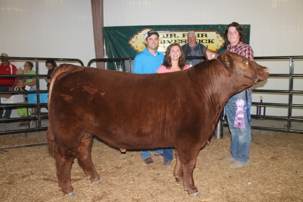 Alexa Baker raised the grand champion carcass steer, weighing 1,284 pounds. It sold for $3.75 a pound to Sarchione Auto Sales, represented by Amanda Metts and Joe Sarchione.