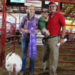 Lindsey Pugh sold her 140-pound reserve champion lamb to Eslich Wrecking for $23 a pound. Pictured from left are Elizabeth Eslich, Richard Eslich, and Lindsey Pugh.