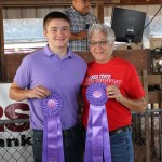Matt Piechuta’s grand champion chicken pen went to Hartville Kitchen for a bid of $1,500. Pictured with Matt Piechuta is Hartville Kitchen representative Vernon Sommers.