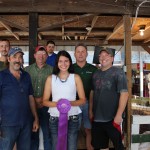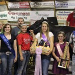 Eslich Wrecking bought Jessica Ruegg’s 1,318-pound grand champion dairy steer carcass for $2 a pound. Pictured from left are Rich Eislich, Sr.; Jessica Ruegg; Rich Eslich, Jr.; and fair royalty Brooke Bishop, Dean Rummell, and Anna Ramsey.