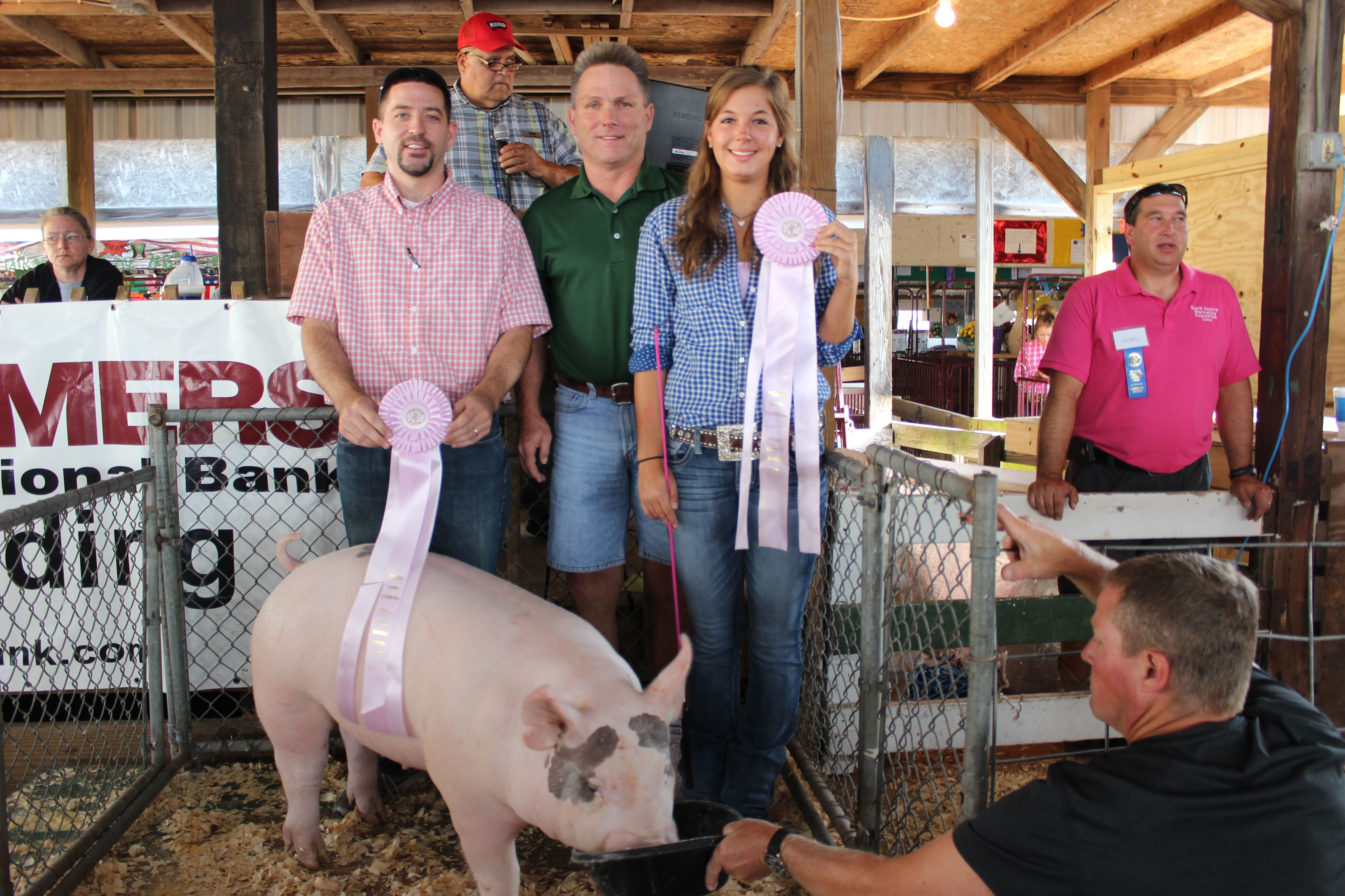 Brooke Bishop sold her 509-pound grand champion dairy feeder to John and Sally Deininger of Wooded View Farms for a record-setting $8.50 a pound.