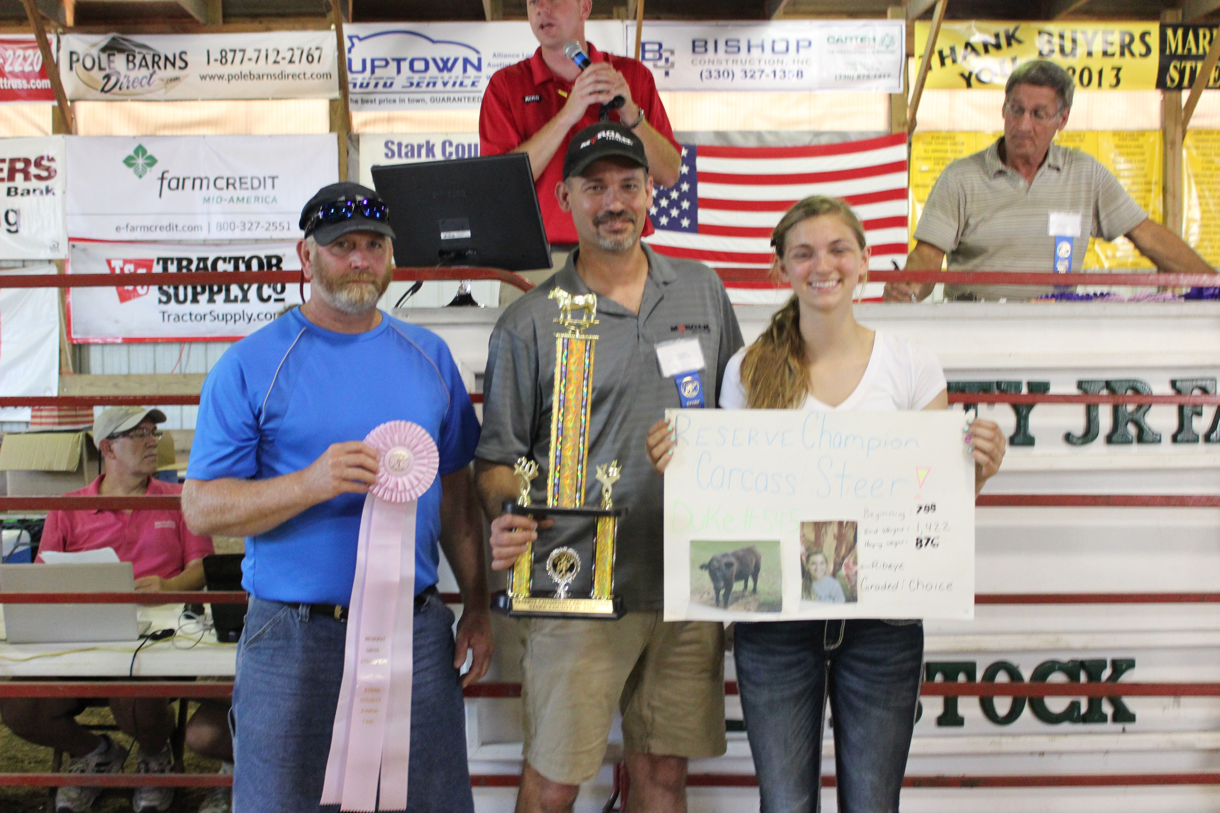 Alexandra Mauer sold her 1,422-pound reserve champion market beef steer carcass to Bill Eyer, Creekview Acres, and Monter Excavating for $4.25 a pound.