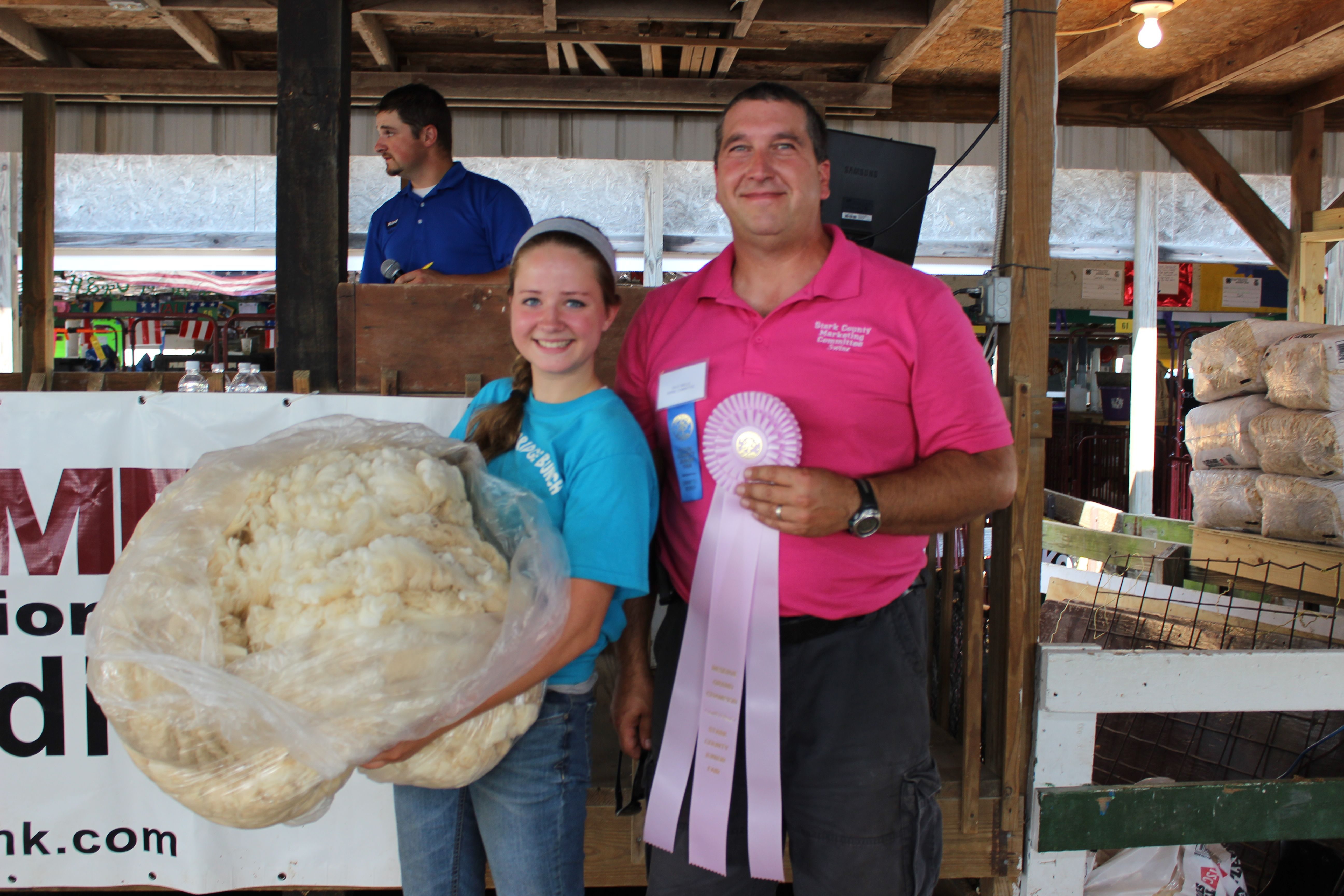 Sarah Shilling recieved a bid of $200 from Wells Family Farm for her reserve champion wool. Pictured with Sarah Shilling is Dale Wells.