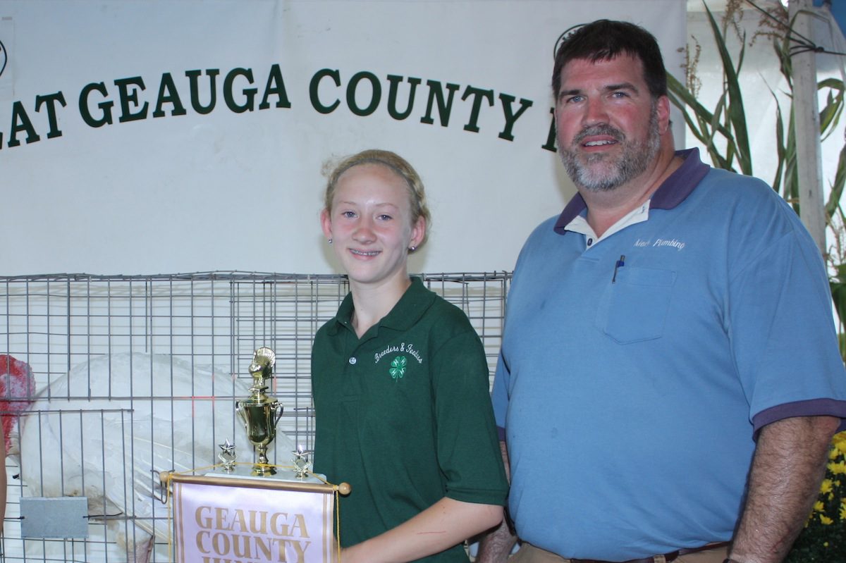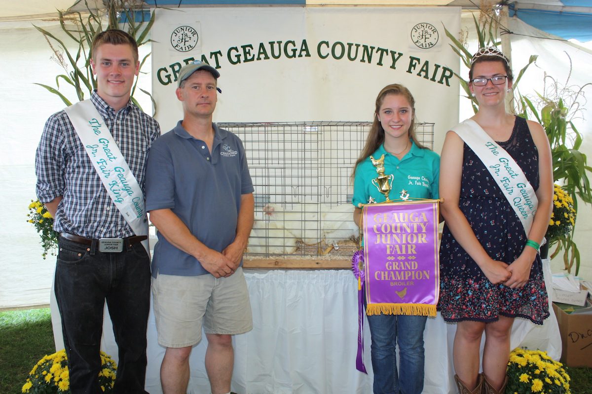 Meghan O’Reilly’s grand champion pen of chickens weighing 32.70 pounds sold for $55 a pound to Geauga Feed and Grain, represented by Kevin O’Reilly.