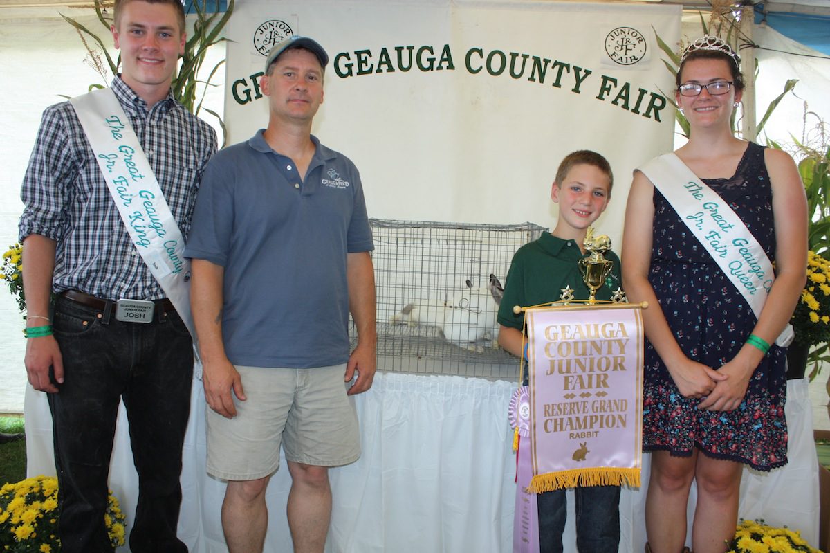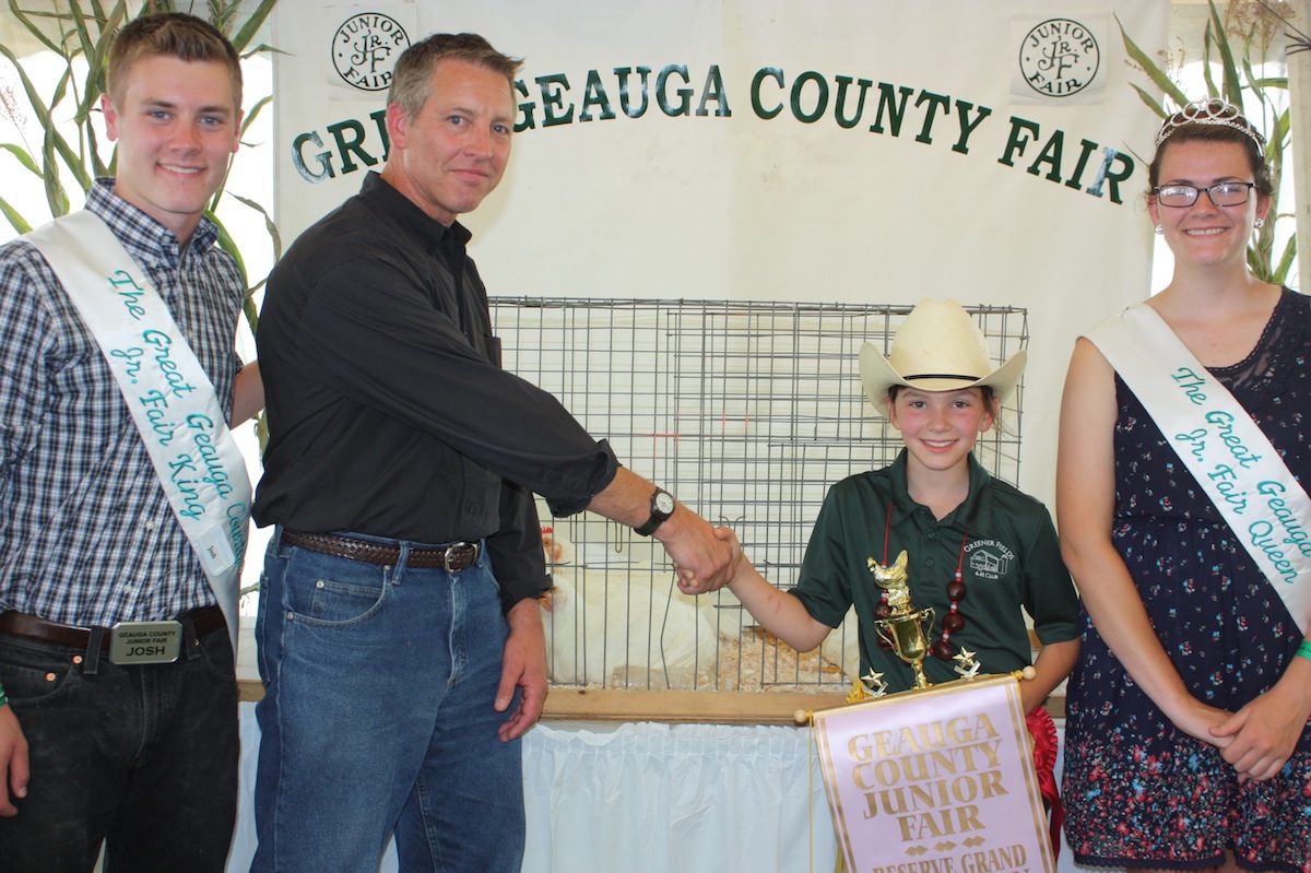 Jacob Grinstead’s reserve champion pen of rabbits, which weighed 13.50 pounds, sold to Geauga Feed and Grain, represented by Kevin O’Reilly, for $55 a pound.