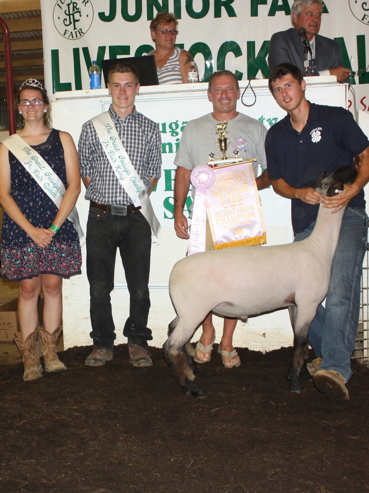 Tyler Rendlesham sold his 136-pound reserve champion lamb for $5.50 a pound to the NAPA stores in Chagrin Falls and Middlefield, represented by Pete Sugarman.