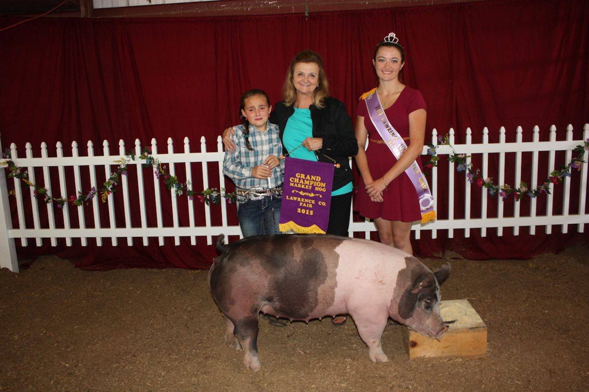 Taylor Pfaff’s 271-pound grand champion market hog sold for $14.50 a pound to the Crain Room Grille, represented by Valerie Measel.