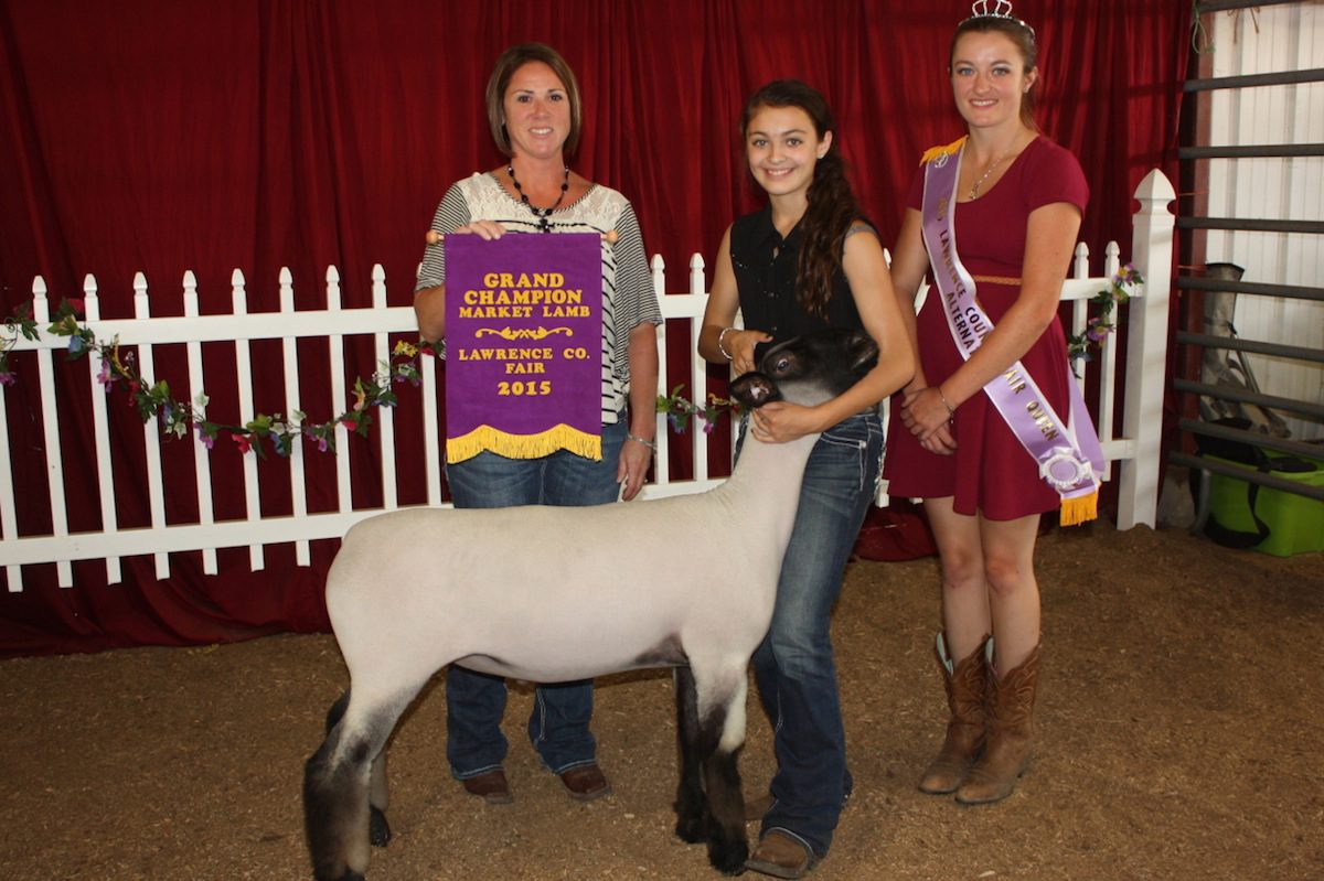 Paige Clyde’s 136-pound grand champion lamb sold for $10.50 a pound to Shawn Eldridge, who purchased the lamb in memory of Grant James (Jim) Clyde. Gayle Kissick is representing the buyer.