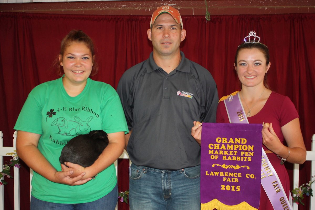 Kylee Barger’s grand champion pen of rabbits, weighing a total of 15.4 pounds, sold for $25 a pound to Tomeo Farms Featherlite, Big Tex and Wells Cargo Trailers; and Tomeo Farms Husqvarna Parts, Sales and Service, represented by Matt Tomeo.