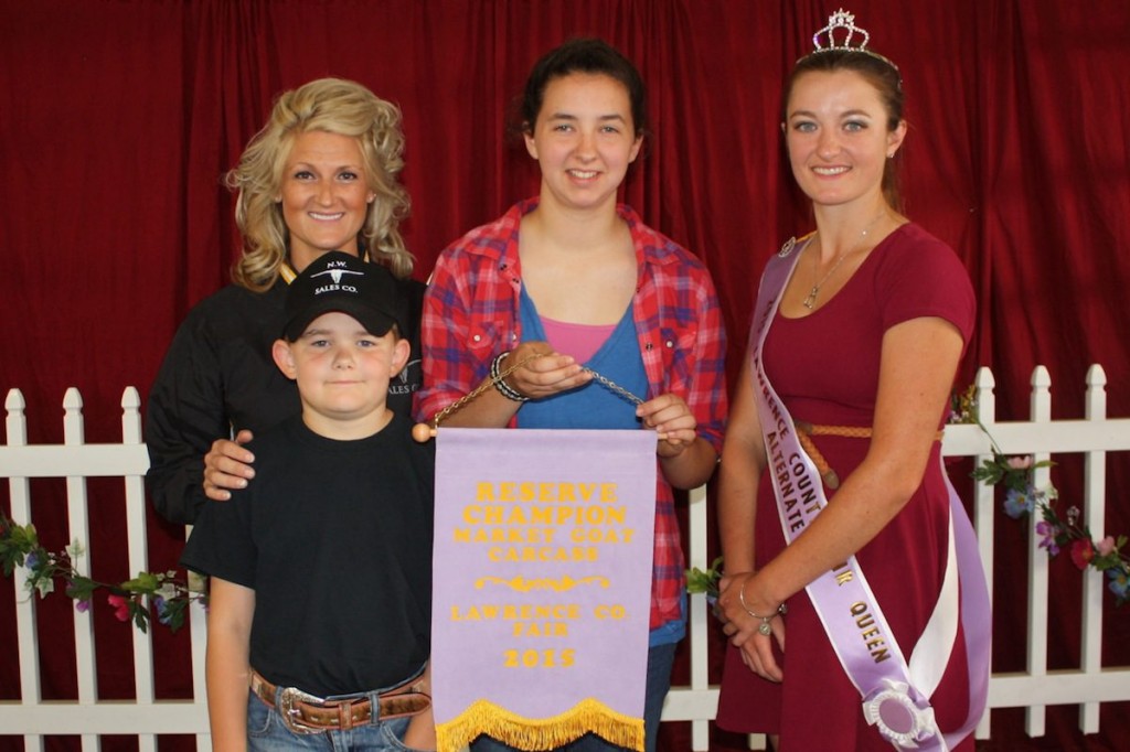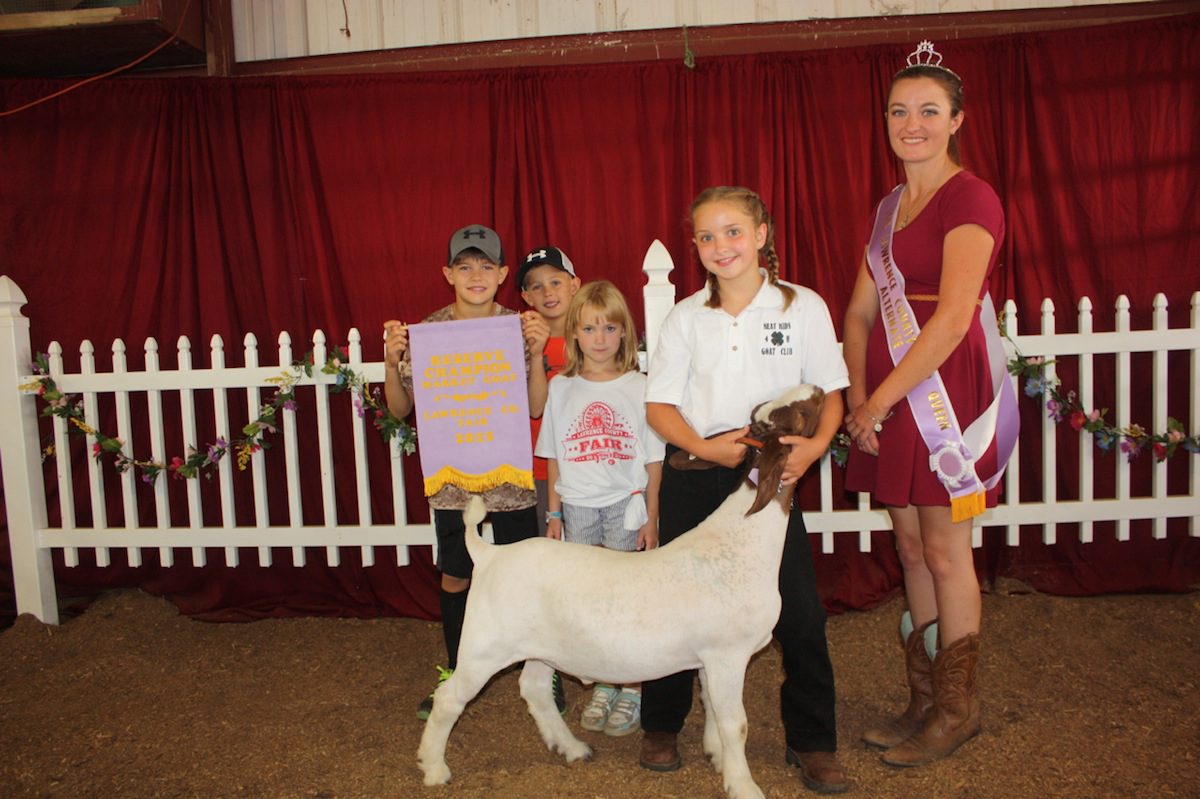 Pizza Joe’s of Portersville and Mohawk, represented by Kyle Allison, Tyler Allison and Rayleigh Peffer, paid $5 a pound for Katelyn Stivers’ 91-pound reserve champion market goat.