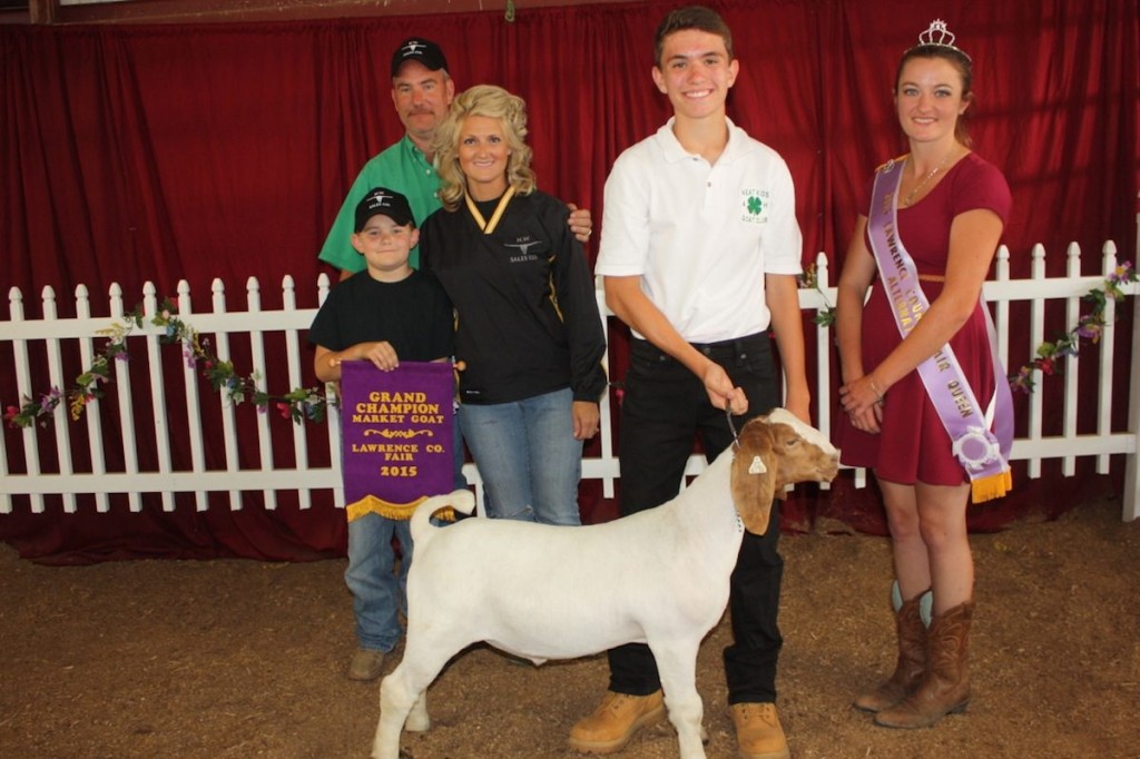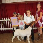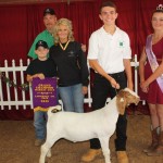 Aiden Wanner’s 86-pound grand champion goat sold for $10 a pound to the New NW Sales Company, represented by Ken, Dianna and Chance Mezurek.