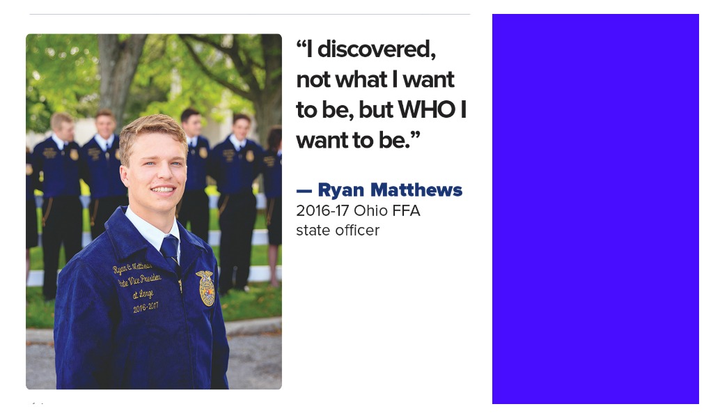 (Ryan Matthews is an FFA’er from Fredericktown High School in Knox County, Ohio. He served as a 2016-17 state FFA vice president, at-large.)