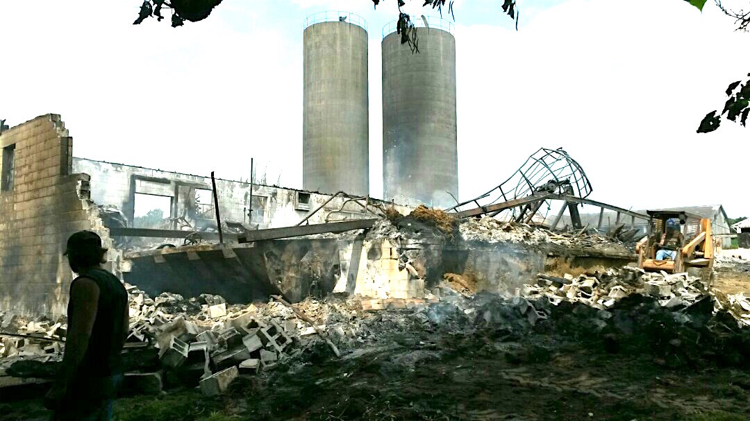 A major fire destroyed their Amazing Grace Dairy barn during the night, along with their herd of about 120 Holstein dairy cattle, several thousand bales of hay and some farm equipment.
