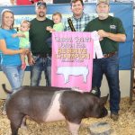Don’s Custom Meats, represented by (from left) Kara Pontius (holding Reagan Pontius), Don Pontones Jr. (holding Kason), and Don Pontones Sr., paid $10 a pound for Dakota Walters’ 265-pound reserve champion hog.