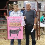 Joey Ocel raised the reserve champion carcass steer, which had a hanging weight of 740 pounds. It sold for a record $6 a pound to Ponderosa Steakhouse, represented by Jim Buxton, manager.