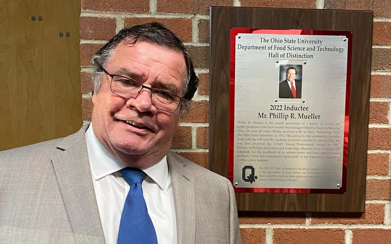 MINERVA, Ohio — Minerva Dairy announces that former CEO Phil Mueller was officially inducted into the Ohio State University’s Department of Food Science and Technology Hall of Distinction on during Ohio State’s 2022 Homecoming Weekend.