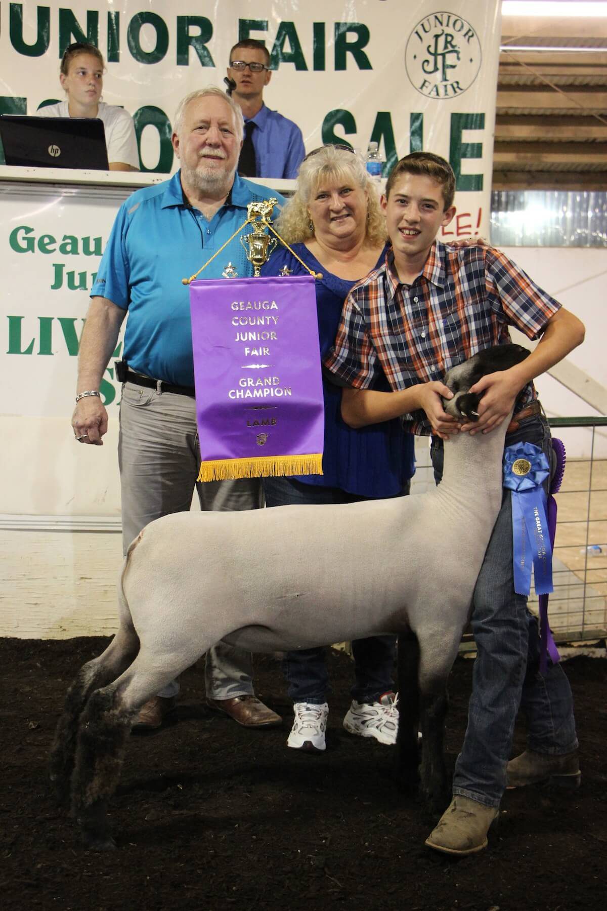 Danny Nichols sold his 145-pound grand champion market lamb for $11 a pound to Dave Green and Karen Boyle of Green Family Funeral Home.