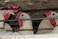 Chickens in battery cages at Platteville, Co. egg farm