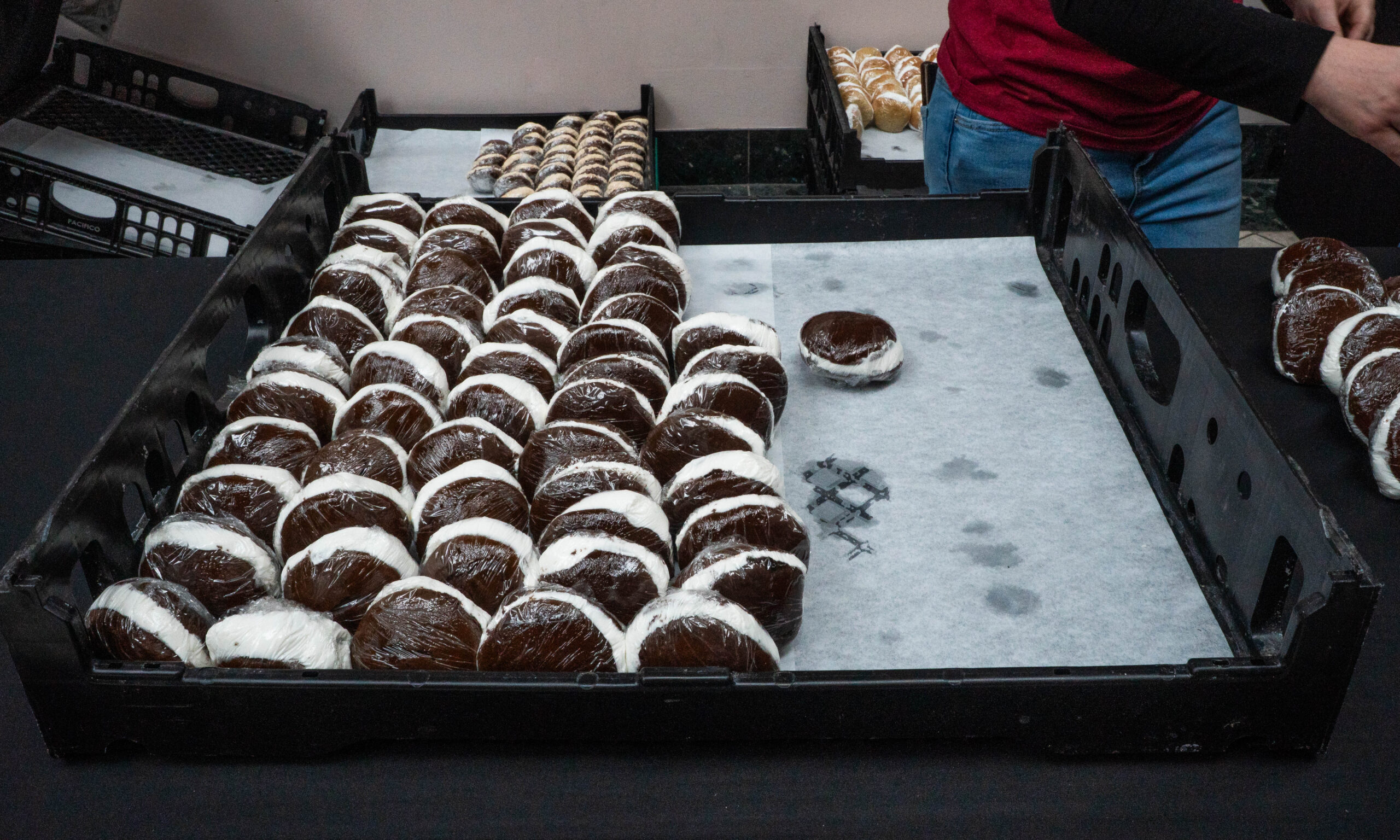 One employee in the early 1920s grabbed two small chocolate cakes and put icing in between them, creating the first gob. This treat was a staple of the bakery, and was appealing at the time because it could be eaten by hand in bagged lunches.