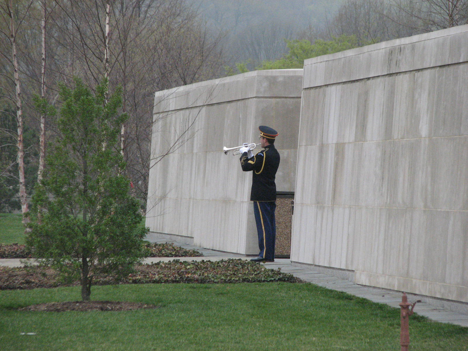 Staff Sgt. Michael Jury, an Army bugler based at Fort Myer, plays Taps during a funeral outside the Columbarium at Arlington National Cemetery. Jury also plays during wreath ceremonies at the Tomb of the Unknowns, for the president or foreign dignitaries and during performances by the U.S. Army Band, “Pershing’s Own.”