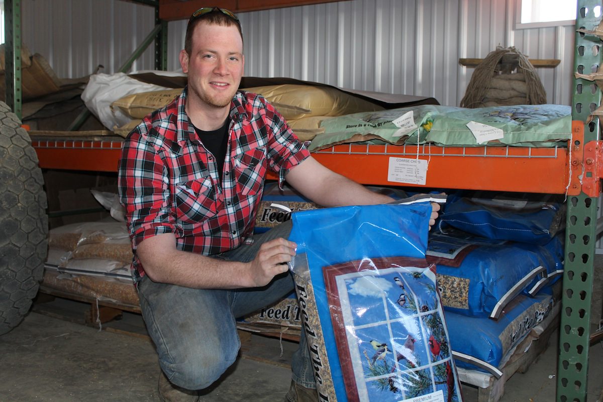 Mahoney also operates his own birdseed business, Sunny Side Feeds, located on the same farm. He mixes sunflowers, and other types of seeds, to make birdseed.