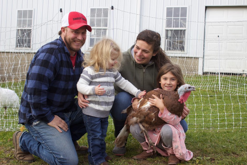 She and Ed both work off the farm full time, and keeping the farm going is a joint effort. Danielle handles the marketing and business side. With the turkeys, she prefers dealing with them when they’re still little. Ed doesn’t like dealing with the poults, but doesn’t mind handling the adult turkeys.