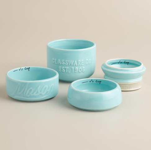 For the foodie who loves vintage, these aqua blue measuring cups will be a hit. Priced at a$12.99, the standard set includes four cups that stack on top of one another to create a countertop conversation piece.