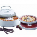 With an adjustable thermostat, top-mounted fan for the more effective drying and five drying trays, the Snackmaster Pro 600 watt food dehydrator works well for drying jerky, fruit and vegetables. Priced at $69.99, this dehydrator comes with a one-year limited warranty.