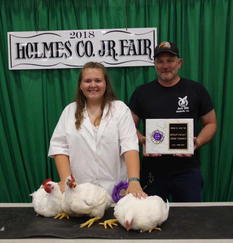 Steve Compton bid $1,700 for Alyssa Pringle’s champion pen of broilers for the Fraternal Order of the Eagles.