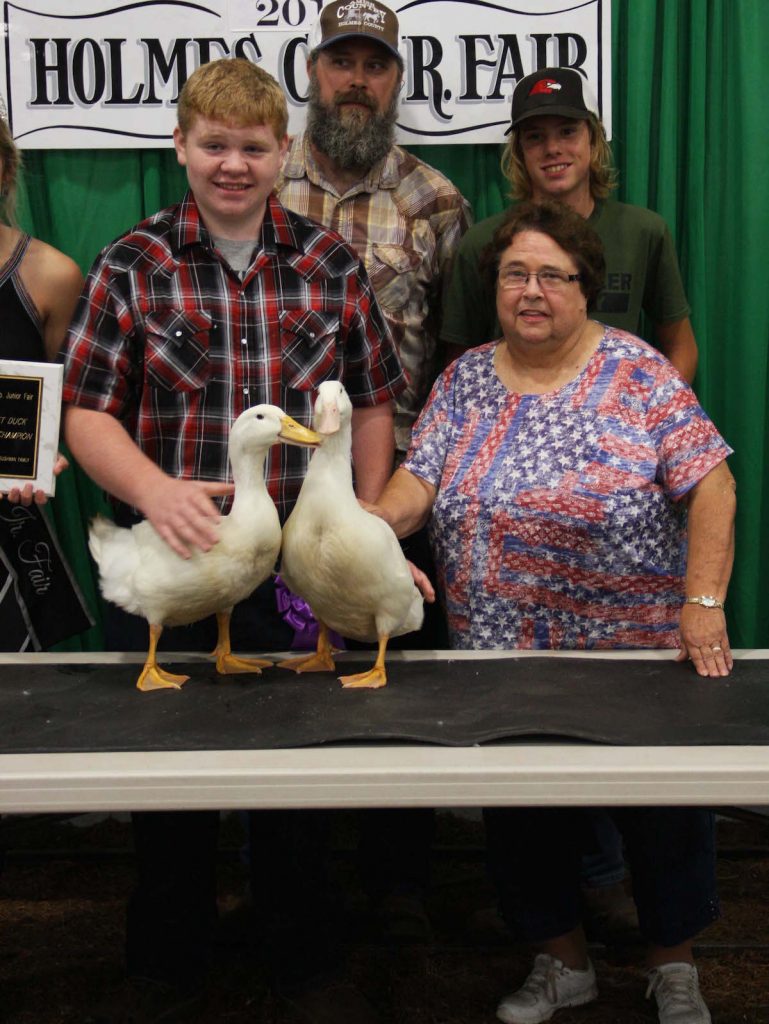 Mrs. Yoder’s Kitchen and Yoder’s Amish Home, represented by Gloria, Eli, Trent and Joplin Yoder, bid $1,700 for Austin Jones’ champion pen of meat ducks.