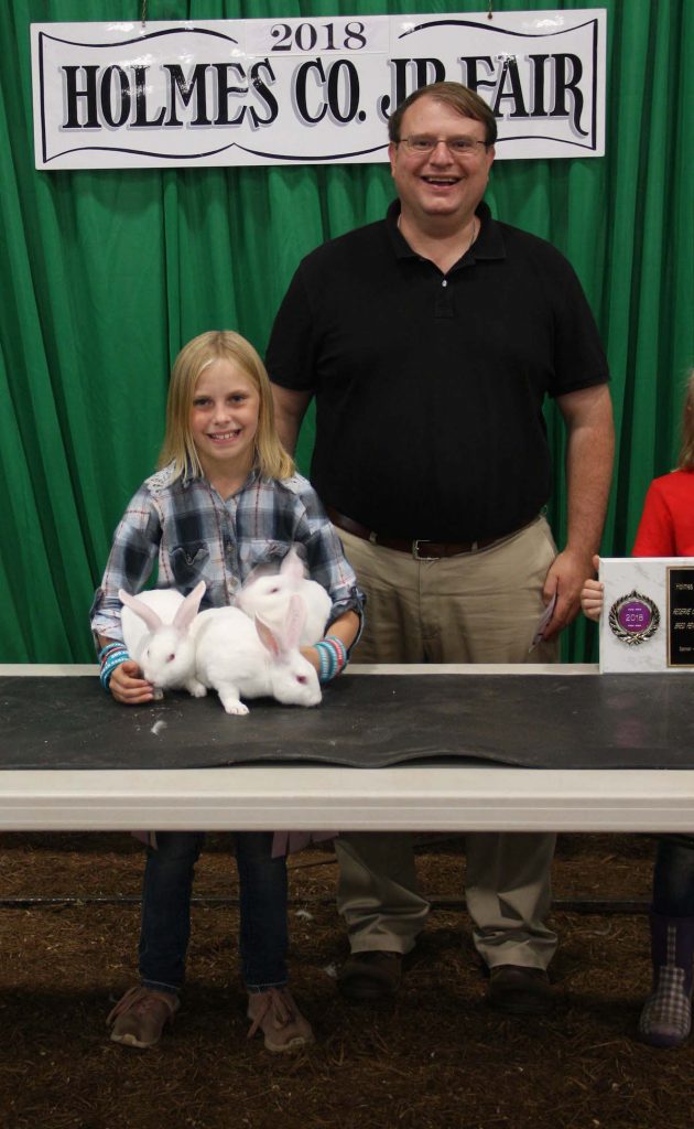 Larry Obhof bid $600 for Adrienne Stump’s reserve champion pen of market rabbits.