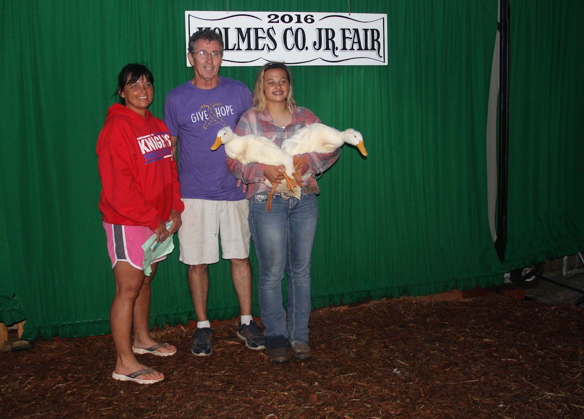 Auntie Ann’s Pretzels, represented by Charlie Bauer and Chris Goines, bid $1,300 for Hannah Goines’ champion pen of meat ducks.