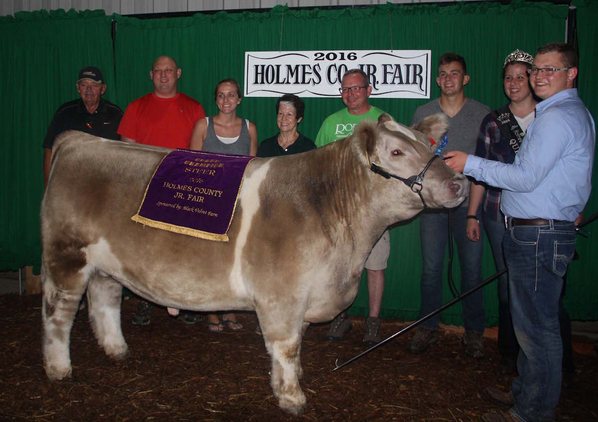 Carter Smith’s 1,359-pound champion steer sold for $11.50 a pound to Precision Geo-Physical, Denco Marketing, Rodhe’s IGA, Millersburg True Value Hardware and Mast Trucking, represented by Willie Mast, Kathy Schlabach, Kurt Rodhe, and Kristen and Joel Yoder.