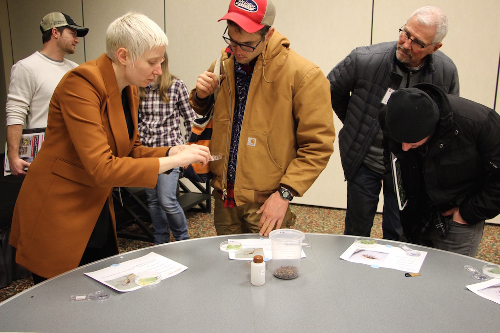 Hops growers had a unique opportunity to visit a Bug Zoo at the Ohio Hops Conference this year. Mary Gardiner, associate professor of entomology at Ohio State, showed growers what some of the tiny pests and beneficial bugs look like up close.