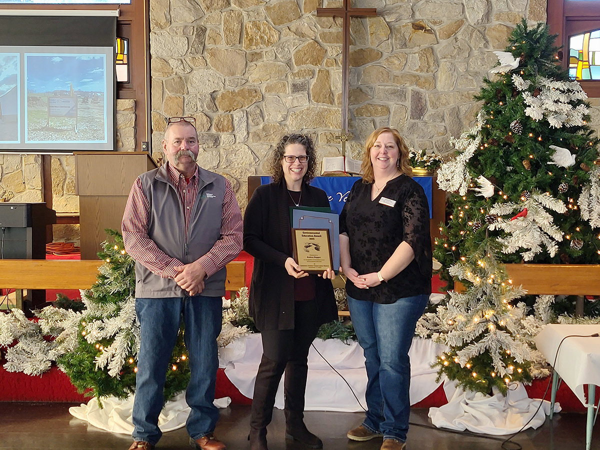 Andrea Hopper received the Lawrence County Conservation District Environmental Education Award for 2025. Pictured, left to right, are Phil Dean, LCCD board chairman; Andrea Hopper; and Jeannie Shay, LCCD watershed specialist/environmental educator. (Submitted photo)