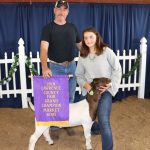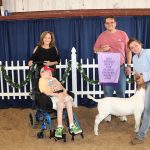 Adelynn Pfaff raised the 87-pound grand champion market goat, which sold for $7 a pound to the New NW Sales Co., represented by Ken Mezurek.