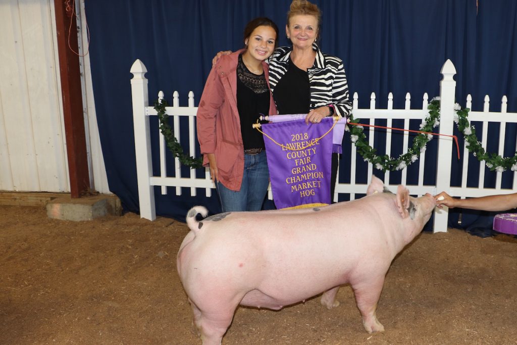 Katelynn Bennett sold her 277-pound grand champion market hog to the Crane Room Grille, represented by Valerie Measel, for $9 a pound.