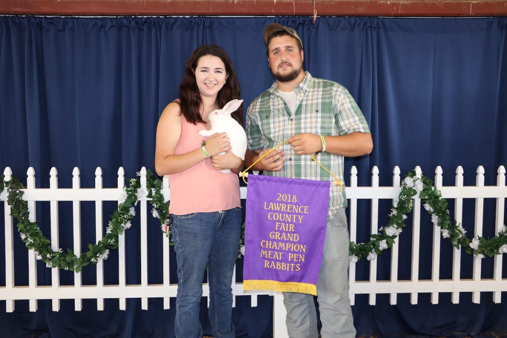 Emma Hall raised the grand champion pen of meat rabbits, weighing 12.212 pounds, which sold for $30 a pound to Ryan Guidice.