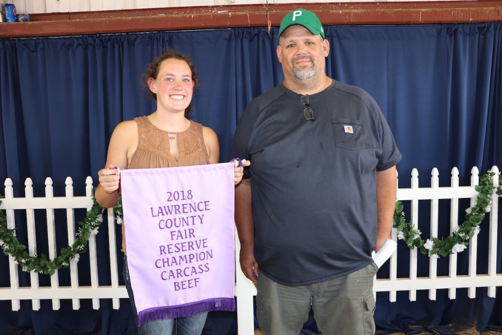 Gracie Enscoe’s reserve champion steer carcass, weighing 697 pounds, sold for $2.15 a pound to Pizza Joe’s of Portersville, represented by Jason Peffer.