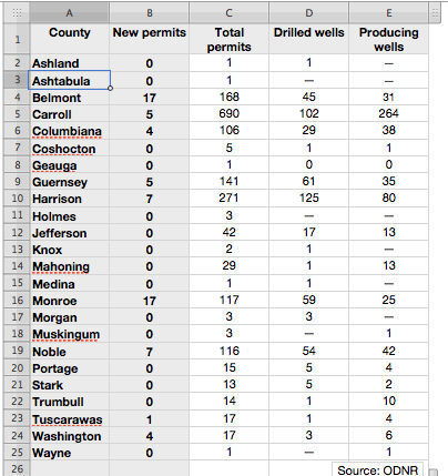 According to the ODNR report, there are 45 wells waiting to be hooked up to pipelines and infrastructure. There are currently 31 producing wells in the county.