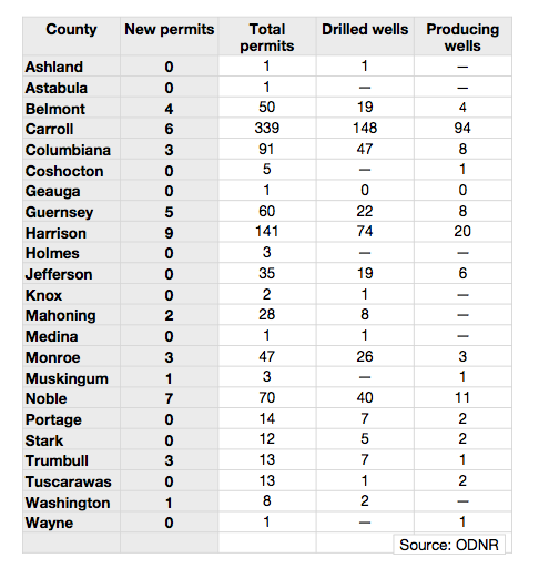 Six permits were also issued in Carroll County. Three were issued in Lee Township, two in Fox Township and one in Perry Township. All of them were issued to Chesapeake Exploration.