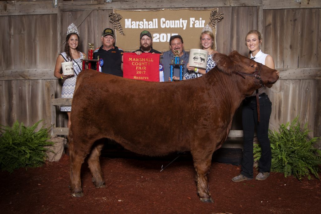 Alyssa Strope showed the grand champion steer, weighing 1,321 pounds. Young’s Cattle Company, represented by Rick and Jayne Young, and American Petroleum Partners, represented by Dustin Emenhiser, purchased the steer for $5 per pound. (Submitted photo)
