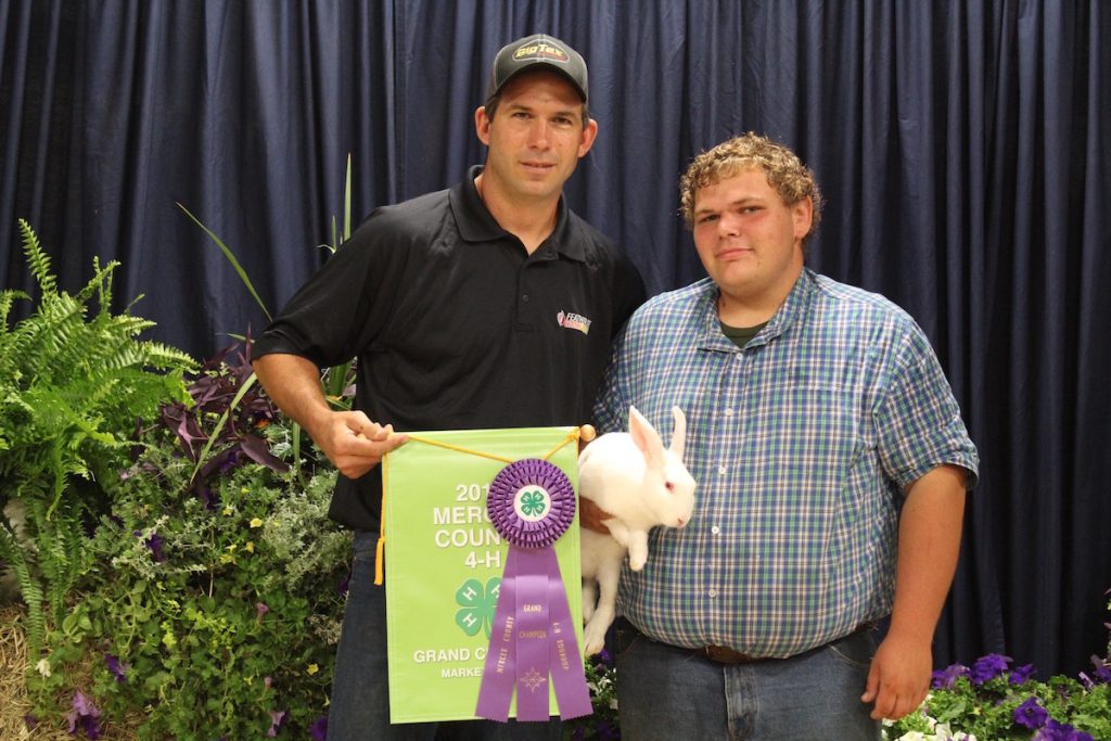 Andrew Edney sold his 7-pound champion market rabbit project for $70 a pound to Matt Tomeo, of Tomeo Farms trailer and Husqvarna supply.