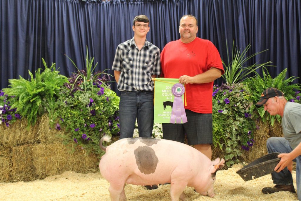 Kenneth Yarnell sold his 240-pound reserve champion market hog for $6 a pound to Chris Clark of SJA Pitch & Putt.