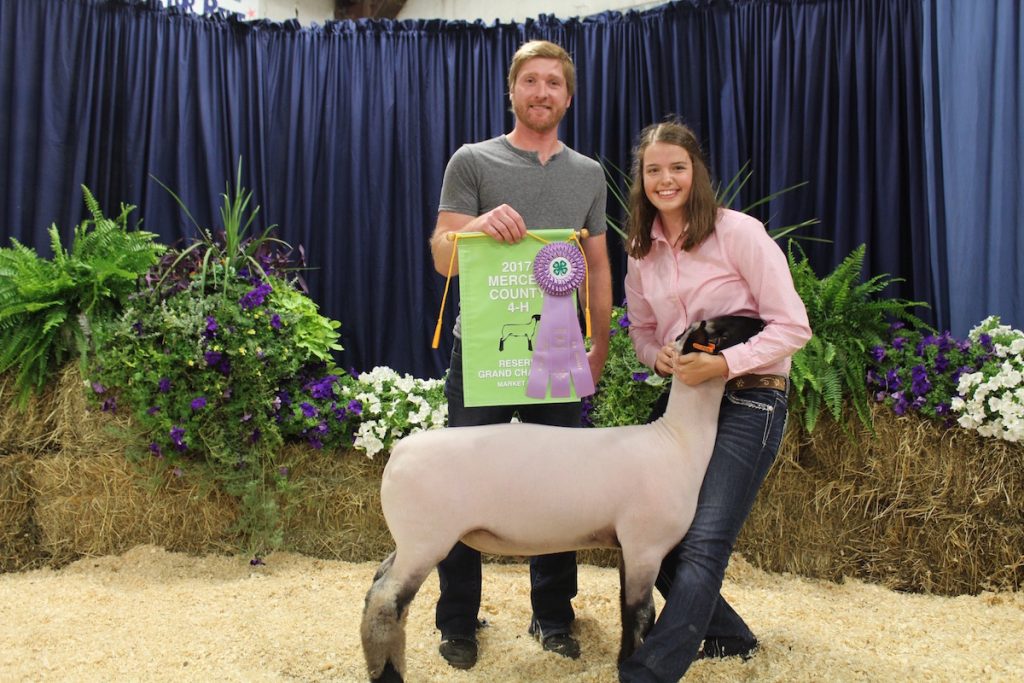 Shelby Rader sold her 147-pound champion market lamb for $9.50 a pound to Matt Miller of The Area Shopper and Miller’s Auction Service.