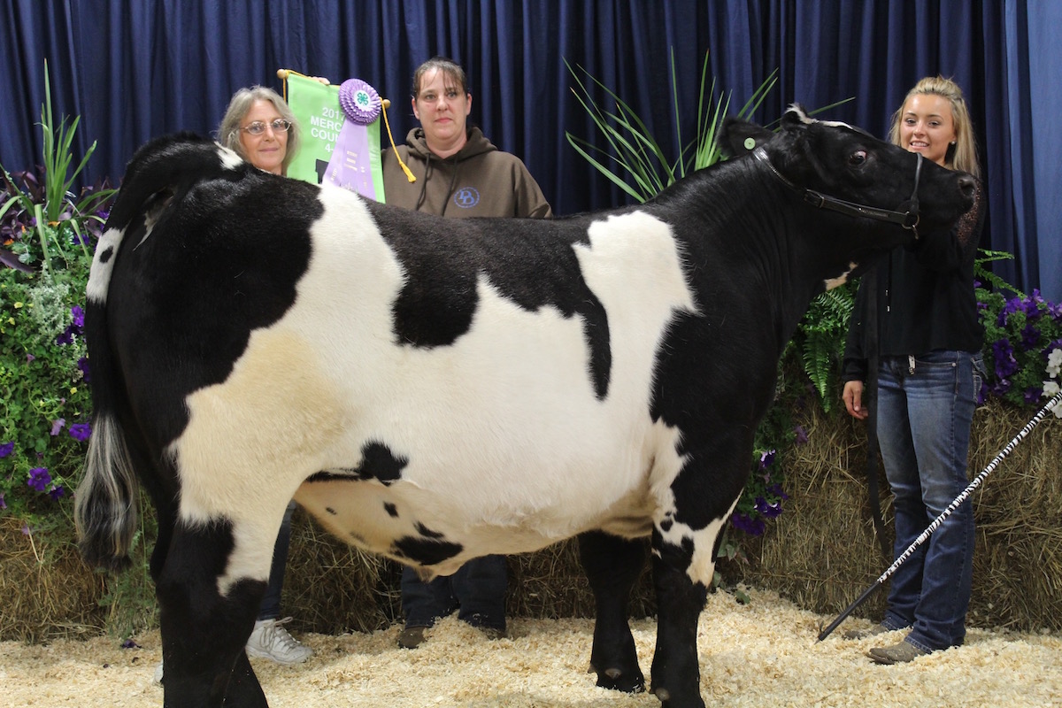 Courtnie Roberts sold her 1,430-pound reserve champion market steer for $3 a pound to Kelley McGowan and Missy Whetzel, for Hoss’s Steak & Sea House.