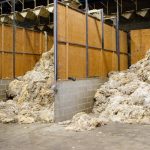 Once the wool is graded, it is mixed and stored in a large holding dock with similar-grade wool, before it is compacted and baled for storage.