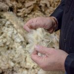 When grading a piece of wool, Cable looks at the fiber’s length and diameter, and pulls on the strands to determine its strength.